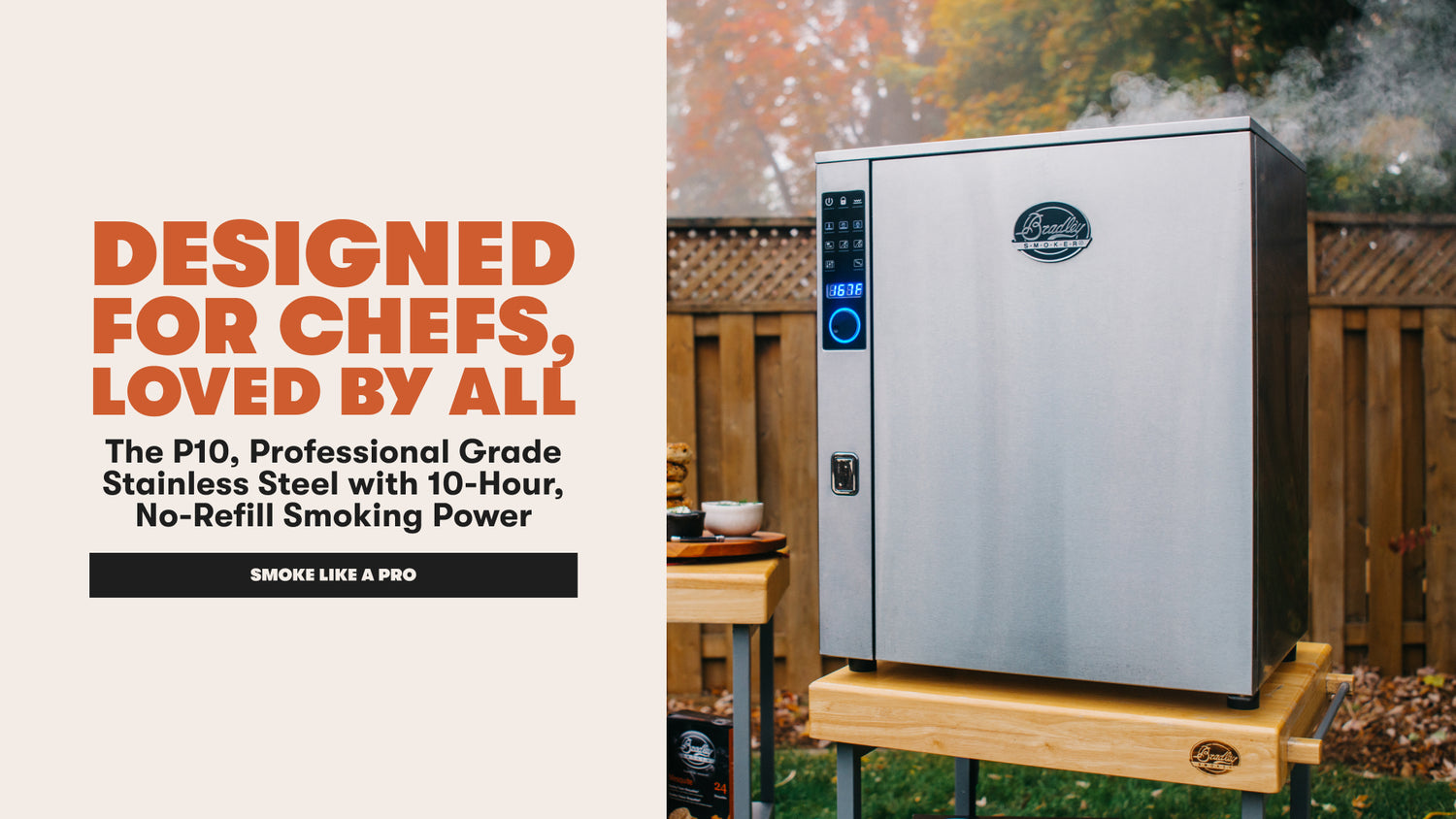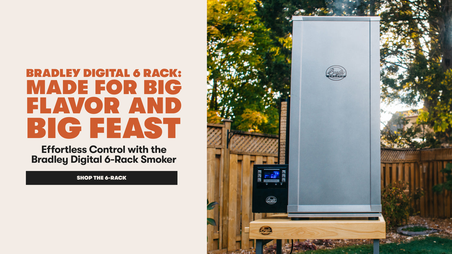 Food smoking isn’t all adrenaline and flame. Smoke says something beautiful’s in the air. Your food nurtured slowly over time by a method that’s timeless. The Bradley Smoker is a whole new generation of food smokers. Pick a recipe, a bisquette, and then set the time and temp. See how a Bradley Smoker so easily adds flavor to everything.